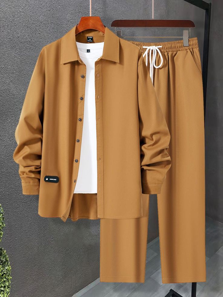 Men’s Casual Two-Piece Button-Up Shirt and Drawstring Pants Set